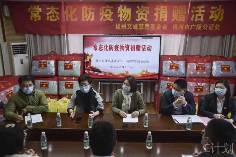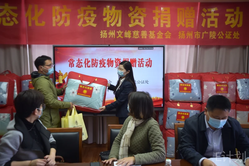 捐赠活动中,扬州文峰慈善基金会与广陵公证处进行了捐赠物资交接,基金会代表宣读了倡议书,区司法局对基金会的大力捐助表示了感谢,并表示将妥善有效利用好捐赠物资,为助力构筑全民免疫长城添砖加瓦。