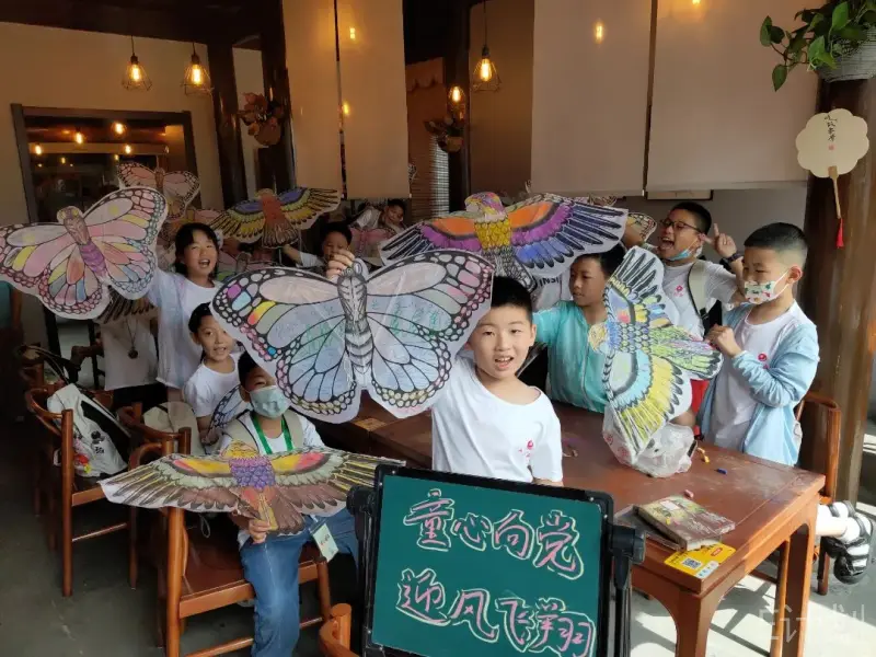 7月6日,“飞鱼计划”之“童心向党 迎风飞翔——喜迎二十大 同心绘纸鸢”研学体验活动在文峰慈善仁丰里项目点举行。该活动分上下午两场,共吸引35名小朋友参与其中。