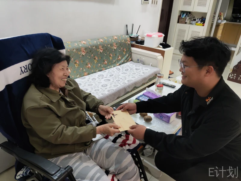 4月27日,扬州文峰慈善基金会慰问义工邓玉凤。