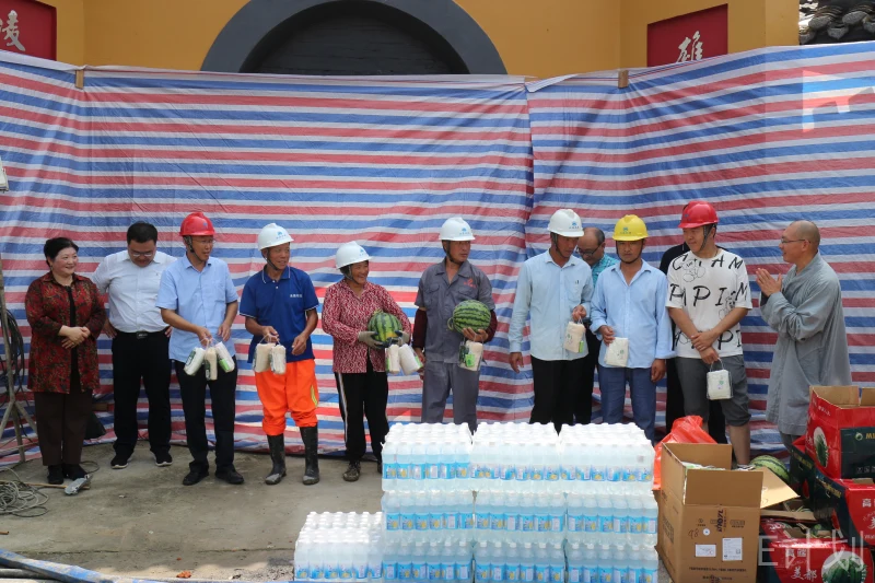 7月25日上午,扬州文峰慈善基金会向奋战在工地一线的工友们送去了西瓜、风油精、盐汽水等防暑降温物品,希望他们在工作之余也要保重身体,更好的补充水分和能量,使工地辛苦工作的工友们感受到社会大家庭的关怀。
