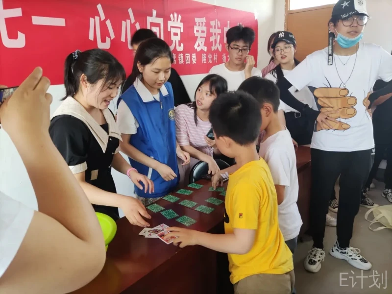 当天下午,志愿者们顶着烈日步行来到隆觉村党群服务中心。一推开活动室的大门,迎接志愿者们的就是小朋友们热情的招呼,下面主持人便进入正题,开始介绍起了今天的游戏!