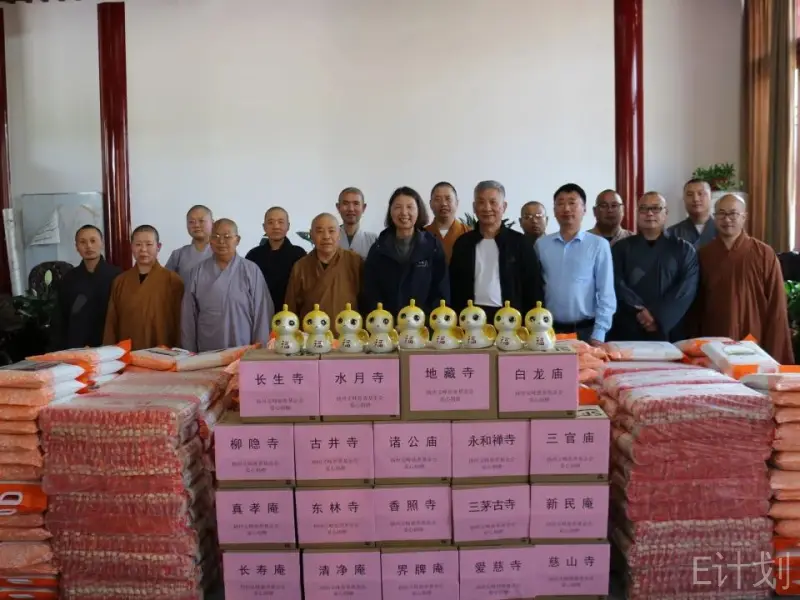 4月23日下午,扬州文峰慈善基金会联合扬州市佛教协会在仪征地藏寺举办“市佛教界爱心物资捐赠仪式”,向仪征市19家寺院捐赠3000斤福米、1200袋福面与500袋净素火锅料。扬州市佛教协会秘书长徐永斌先生、仪征市民宗局张剑峰科长、仪征市佛教协会常务副会长昌尔法师、副会长广承法师、秘书长赵宏梅女士、扬州文峰慈善基金会副理事长兼秘书长肖楠女士及受赠方代表参加了此次活动。