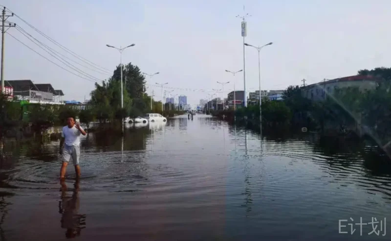 16:40,联合救援组赶往新乡耿黄镇,这里还有大量洪水,许多乡镇变成汪洋。部分路段水深至腰部还不能通行,沿途可见大量的报废汽车还没来得及回收。