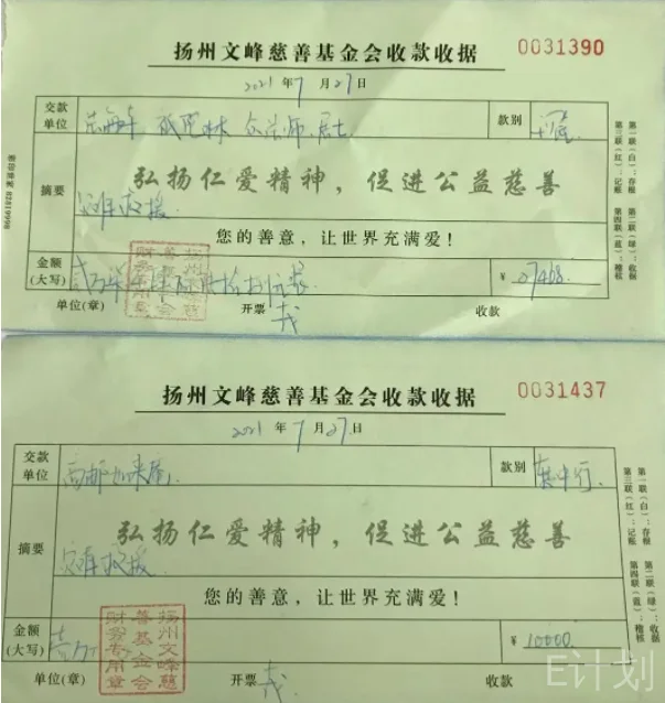 法海寺、祇陀林、高邮市如来庵、愿生寺融善法师等佛教界四众弟子共同向文峰慈善驰援河南公益行动捐赠善款。