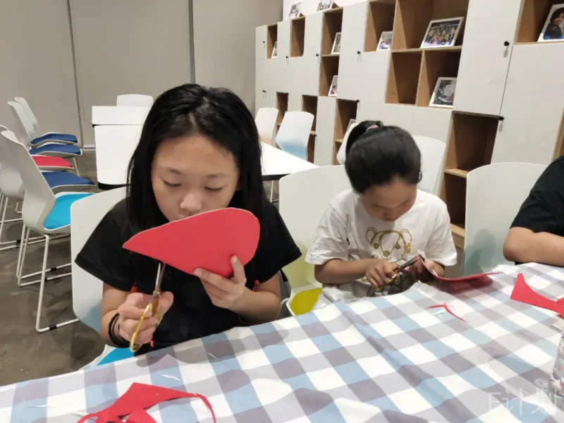 文峰慈善“飞鱼计划”导师团成员王蔚老师来到深潜大运河中心,和参加赛艇夏令营的小伙伴们进行了一场趣味十足的扬州剪纸非遗研学体验活动。