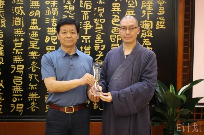 扬州文峰寺方丈、扬州文峰慈善基金会副理事长能度法师接过”最具爱心慈善捐赠单位”荣誉奖杯。