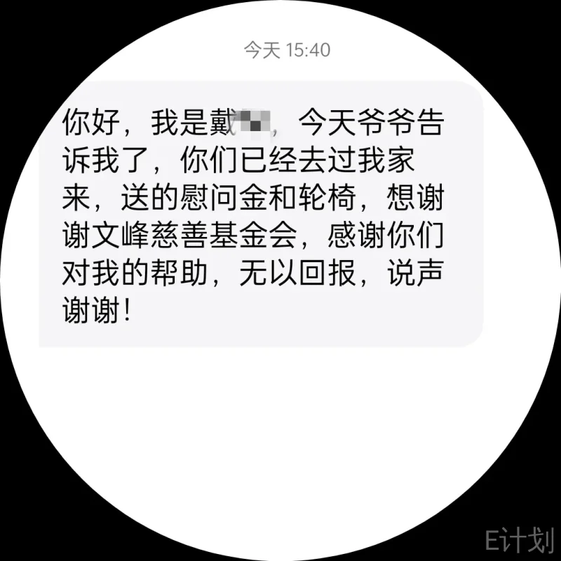 代爷爷现在的住所是一间安置房,有一个女儿,女儿不上班在家还要照顾两个宝宝。考虑到代爷爷腿脚不便,扬州文峰慈善基金会的义工不仅带来了爱心福罐善款还有一台轮椅。