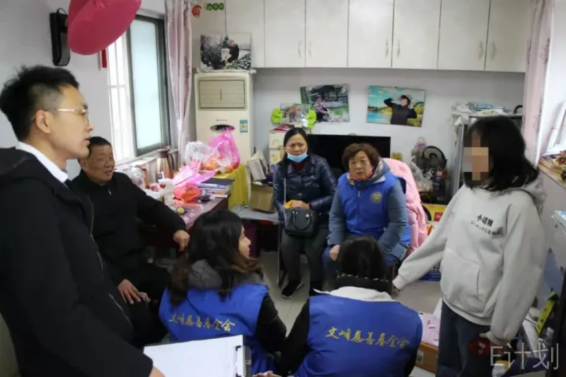2021年3月17日,扬州文峰慈善基金会的义工们来到教场附近,慰问陈女士一家。