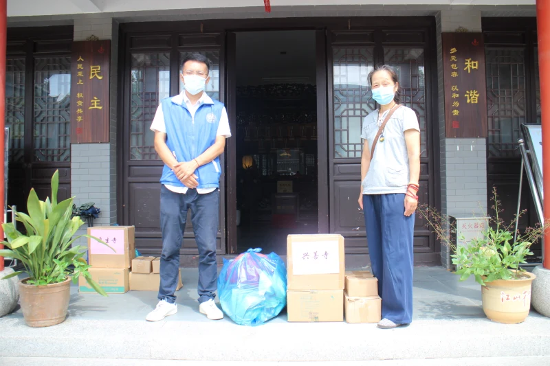 9月11日上午,扬州文峰慈善基金会向广陵区旌忠律寺、祇陀林、愿生寺、兴善寺捐赠了抗疫中药包、免洗消毒凝胶、消毒液、酒精湿纸巾、口罩等防疫物资,支持常态化防疫工作。