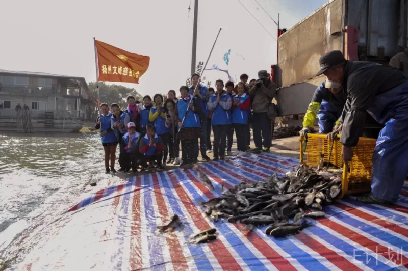 2019年10月27日下午,江苏省高宝邵伯湖渔业管理委员会办公室、苏州弘化社慈善基金会、扬州文峰慈善基金会在马头庄邵伯湖码头隆重举办了“社会参与 爱护生态 共创美丽中国”——生命关怀生态公益活动,吸引40余名爱心人士参与活动,放流鳙鱼鱼苗两万余尾。