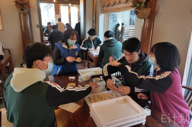 同学们亲手为老人包制荠菜饺子,大家伙忙得不亦乐乎。漫步于春日的老街,同学们流连于仁丰里街区的匠心设计,开动脑筋把春天“剪”出来,把内心的喜悦“剪”出来!仁丰里街区人流不绝,同学们在“四季暖心茶”茶摊服务老人、快递小哥、邮递员、环卫工人等,爱心溢满古城,茶水滋润心田。