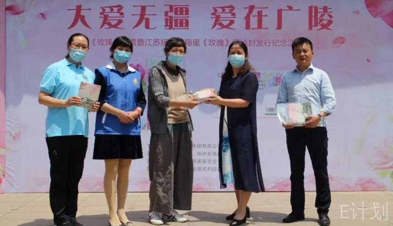 5月20日上午,中国邮政集团有限公司扬州市分公司与个园社区、扬州文峰慈善基金会合作,在扬州花局里举办“大爱无疆 爱在广陵”《玫瑰》新邮发行暨江苏扬州花局里《玫瑰》原地封发行纪念活动,用邮票的艺术和慈善的语言展现大爱扬州的城市风貌与慈善情怀。 《玫瑰》新邮发行,扬州花局里入选为玫瑰原地邮局(全国共7家入选)。肖楠秘书长代表基金会接收爱心捐赠。