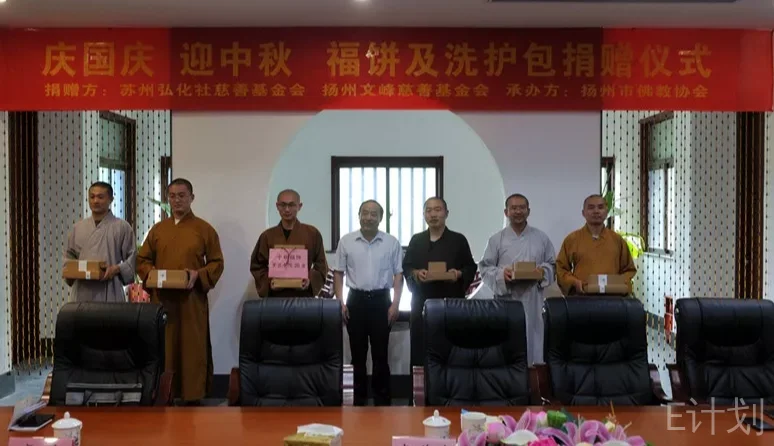 善缘合和,福慧圆满。9月9日下午,扬州文峰慈善基金会携手苏州弘化社慈善基金会、扬州市佛教协会组织的“庆国庆 迎中秋 福饼及洗护包捐赠仪式”在扬州市佛教协会成功举办。福饼及福慧洗护包扬州市民宗局副局长廖勇先生、宗教处处长卢道岭先生,扬州市佛教协会会长能修法师、副会长能度法师、秘书长徐永斌先生,扬州文峰慈善基金会副理事长兼秘书长肖楠女士、副秘书长马焰先生以及受赠单位代表共同参加活动,活动由扬州市佛教协