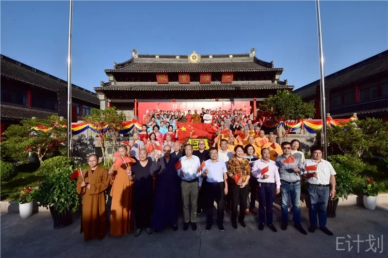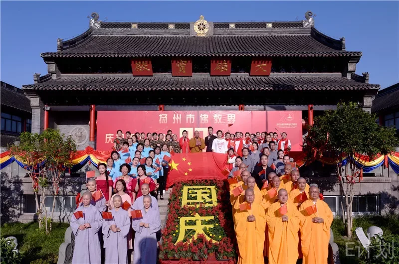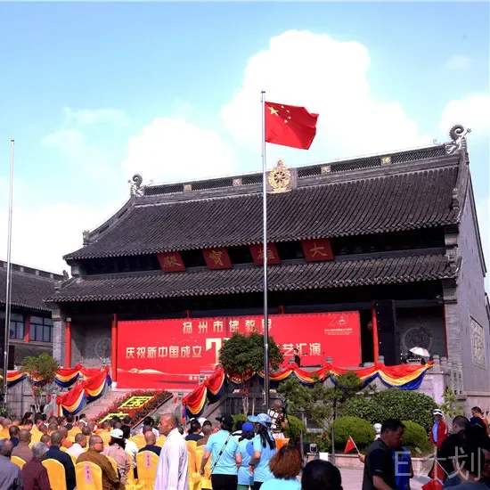 2019年9月22日下午,古运河畔的文峰寺花团锦簇,歌舞翩跹。扬州市佛教协会、扬州文峰慈善基金会联合举办的“扬州市佛教界庆祝新中国成立70周年文艺汇演”在此隆重举行。扬州市佛教界人士500余人济济一堂,以载歌载舞的形式为新中国70华诞献上深情祝福和美好祝愿。